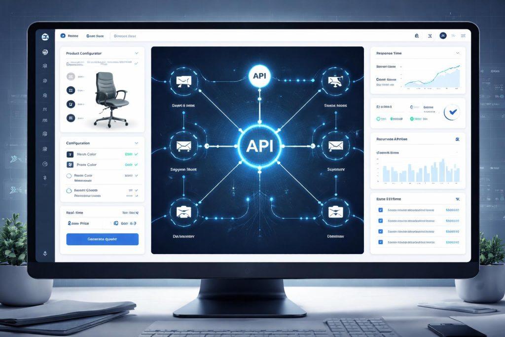 Real-time pricing prawie zawsze opiera się na API. Konfigurator musi pobierać aktualne ceny bazowe, reguły rabatowe, koszty dodatków, dostępność produktów albo limitów produkcyjnych. W bardziej zaawansowanych scenariuszach dochodzą też dane z CRM, ERP, PIM czy systemów logistycznych.