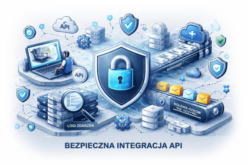 Podstawą są autoryzacja, ograniczenie uprawnień, walidacja danych, logowanie zdarzeń i obsługa błędów. Warto też przewidzieć retry, idempotencję oraz wersjonowanie API, żeby zmiany po stronie jednej z integracji nie psuły działania całego procesu.