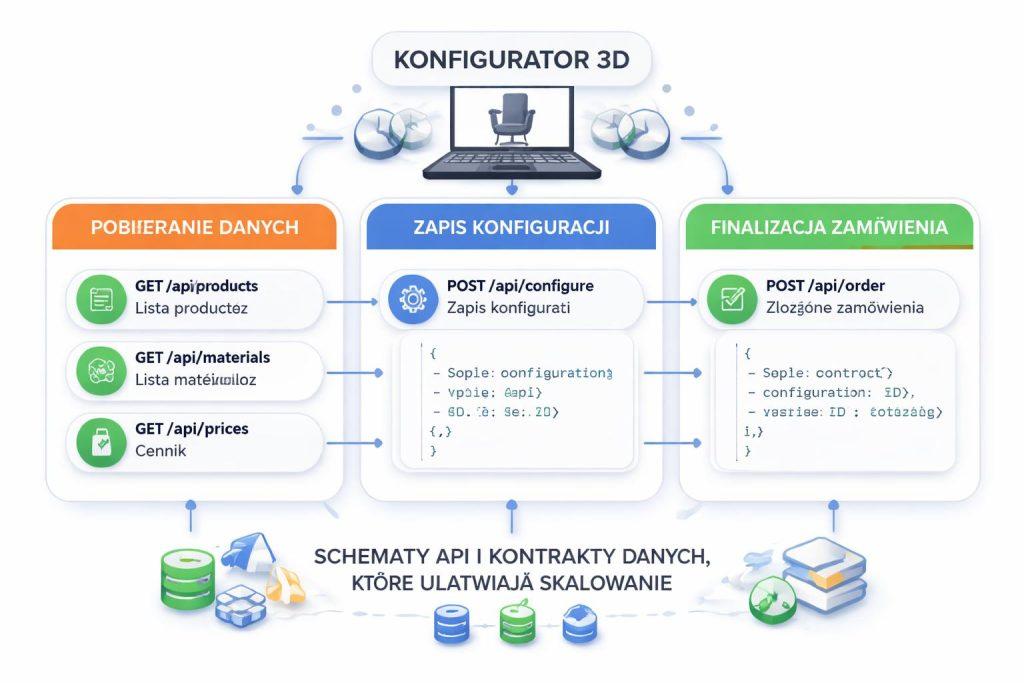Jeśli konfigurator ma współpracować z kilkoma systemami, API musi być zaprojektowane tak, by było przewidywalne i odporne na zmiany. Najczęściej sprawdzają się czytelne kontrakty danych oparte o jasno nazwane zasoby, wersjonowanie endpointów i jednolite zasady walidacji. Dzięki temu frontend, backend i integracje nie są ze sobą mocno sprzężone.