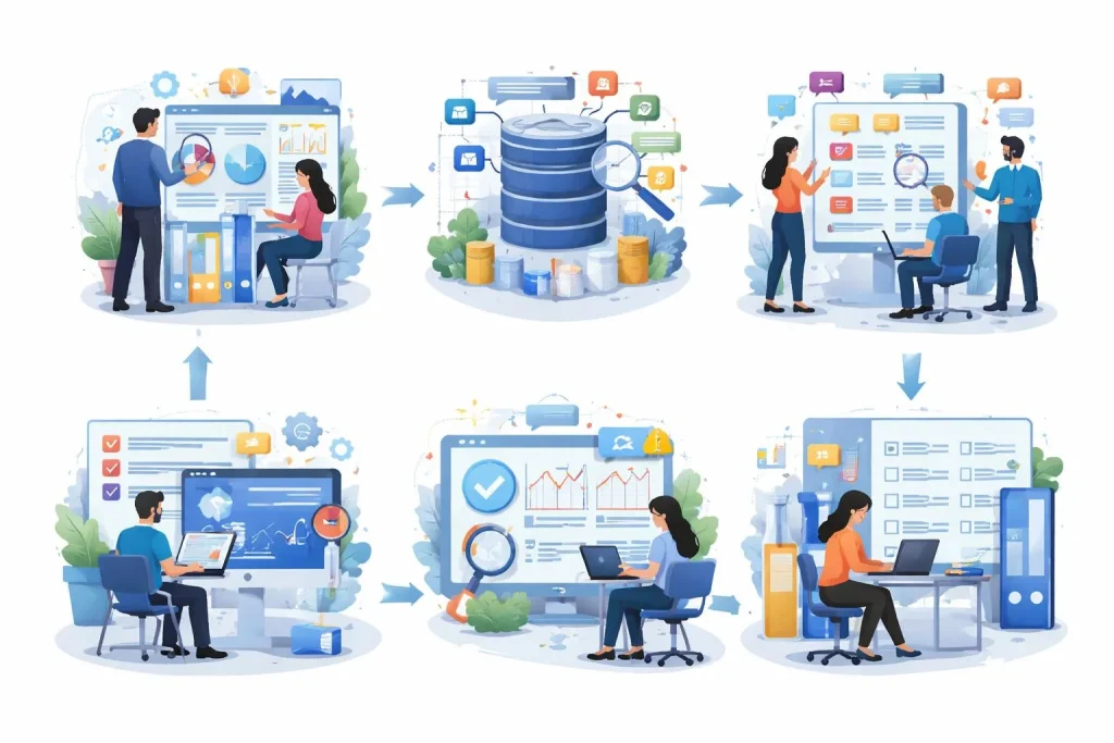 Najlepiej działa podejście procesowe, a nie jednorazowe projektowanie integracji. Zespół powinien pracować na jednym modelu danych, jednej dokumentacji i jednym zestawie reguł odpowiedzialności. Wtedy frontend, backend, integracje i operacje nie rozjeżdżają się w interpretacji atrybutów.