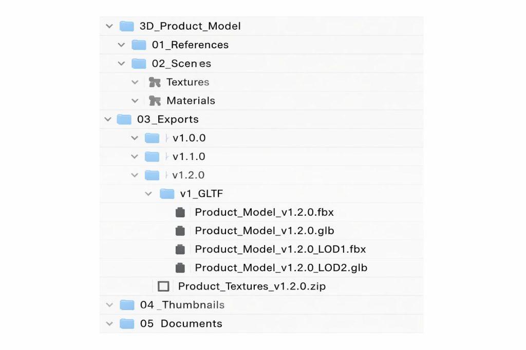 Dobrze przygotowany model 3D to nie tylko geometria i tekstury, ale też porządek w plikach. Wdrożenie konfiguratora bardzo często rozbija się o nieczytelne nazwy, brak wersjonowania albo przypadkową strukturę folderów.