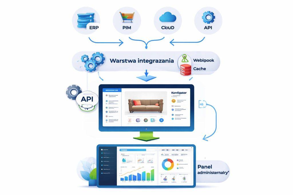 Praktyczny przewodnik po wdrożeniu konfiguratora produktów zasilanego danymi z ERP, PIM, magazynu lub systemu producenta przez API. Dowiedz się, jak zaprojektować architekturę, model danych, synchronizację, panel administracyjny i zabezpieczenia, aby oferta aktualizowała się automatycznie bez ręcznej edycji.