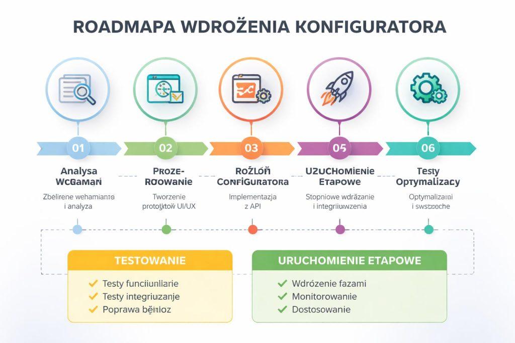 Na końcu warto wdrażać rozwiązanie etapowo. Zwykle lepiej uruchomić konfigurator na wybranej części katalogu lub na środowisku testowym z prawdziwymi danymi niż od razu podmieniać całą ofertę.