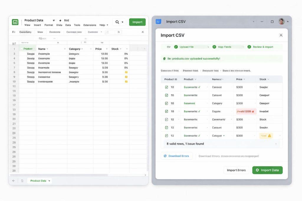 Najlepszy konfigurator z importem danych z arkuszy i CSV opiera się na jednym modelu danych, mapowaniu kolumn, walidacji, wersjonowaniu i podglądzie zmian przed publikacją. Dzięki temu można bezpiecznie masowo aktualizować opcje, ceny i komponenty oraz synchronizować dane z ERP, PIM lub innym systemem źródłowym.