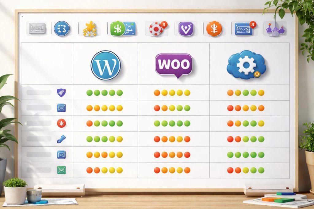 Najkrótsza rekomendacja brzmi: prosty konfigurator i szybki start — WordPress; sprzedaż plus treści i warianty — WooCommerce; złożona logika, integracje i skalowanie — rozwiązanie dedykowane.