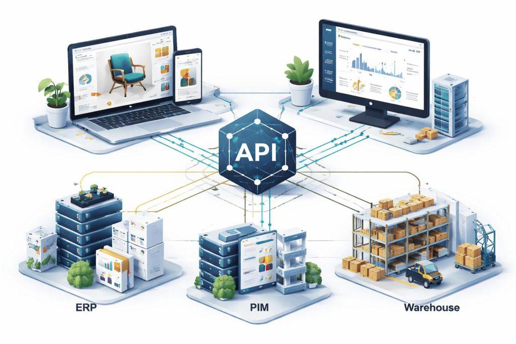 Jeśli sklep z konfiguratorami ma współpracować z ERP, PIM, CRM, magazynem lub systemem produkcyjnym, wybór technologii staje się przede wszystkim decyzją integracyjną. W takim scenariuszu ważne jest nie tylko to, czy da się coś połączyć, ale czy integracja będzie stabilna, łatwa w rozwoju i odporna na błędy danych.